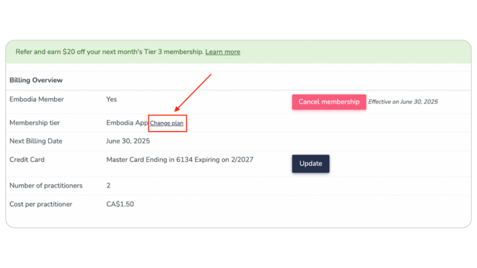 • Upgrade your membership tier by clicking on Change plan (click on this and select the Tier 3 Membership)
